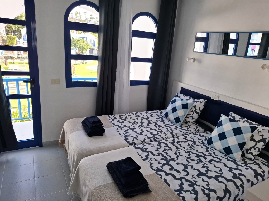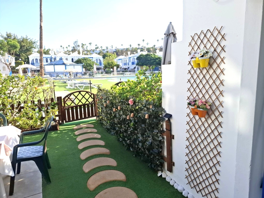 Der Bungalow/Duplex "Casa Romantico" befindet sich in der Anlage "Playmar" in Maspalomas. Das Zentrum von Playa del Ingles erreichen Sie zu Fuss in 10 Minuten.