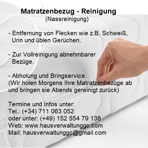 Infos auch telefonisch unter: (+34) 711 063 052 oder unter: (+49) 152-554 79 138 oder per e-mail direkt an: hausverwaltunggc@gmail.com