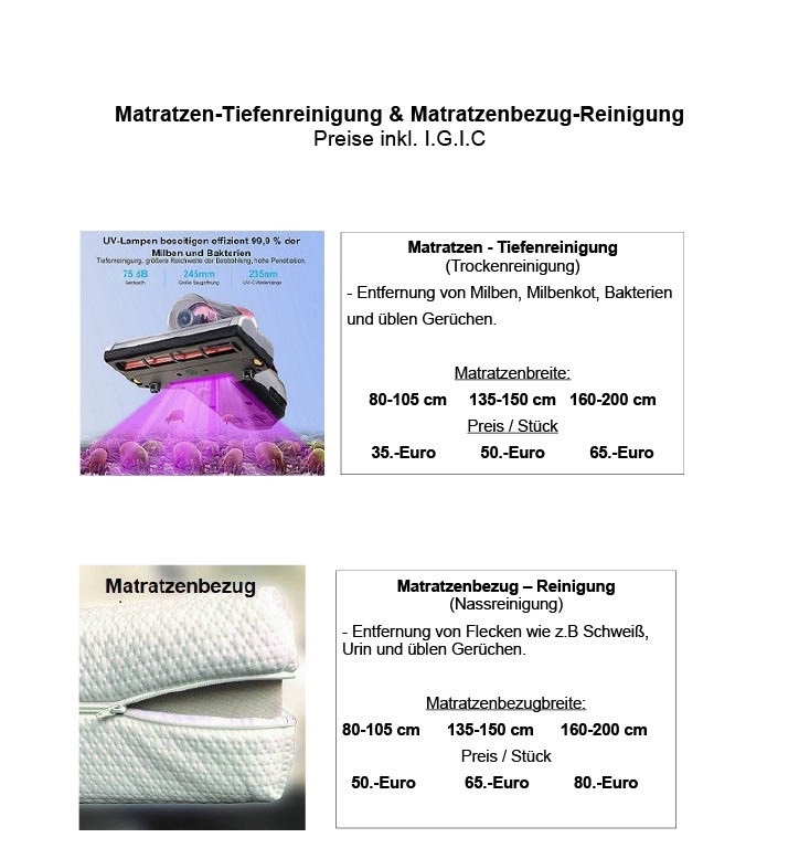 Matratzen - Tiefenreinigungs - Service & Matratzenbezug - Reinigung