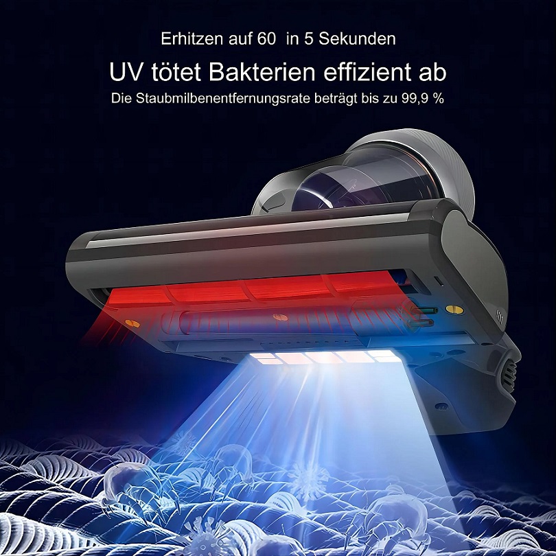 ![]() | Keine Chance für Milben & Bakterien ! - Ein Vibrationssystem lockert Milben und dehren Kot - Die integrierte UV-C Lampe zerstöhrt Milbenzellen und 99 % der Bakterien. - Ultraschall Technologie kann die Nerven der Milben zerstöhren, das Wachstum der Milben verhindern und die Milben für lange Zeit beseitigen. - 60 Grad Hochtemperatur dringt schnell in die Matratze ein und tötet Milben und Bakterien. Matratzen-Tiefenreinigung für erholsamen Schlaf und Hygienisches Wohlfühlen. |